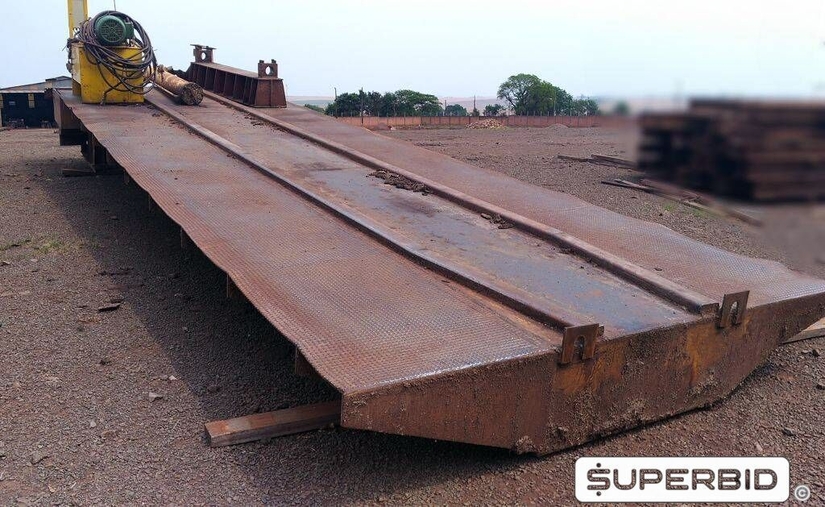 01 UNID. TOMBADOR BASCULANTE, COM CAPACIDADE PARA 35TON., EQUIPADA COM 01 CILINDRO HIDRÁULICO, E 01 UNIDADE HIDRÁULICA PARA ACIONAMENTO DA PLATAFORMA, COM MOTOR WEG MOD. 160M 20CV 1765RPM 220/380V, APROXIMADAMENTE 9,65MTX 2,60MT, PLAQUETA 72165., USADO